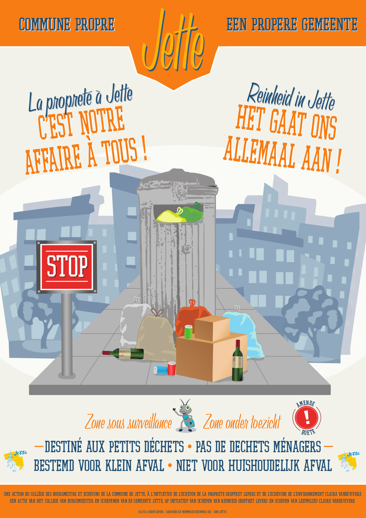 Geen huisvuil in of aan de vuilnisbakjes